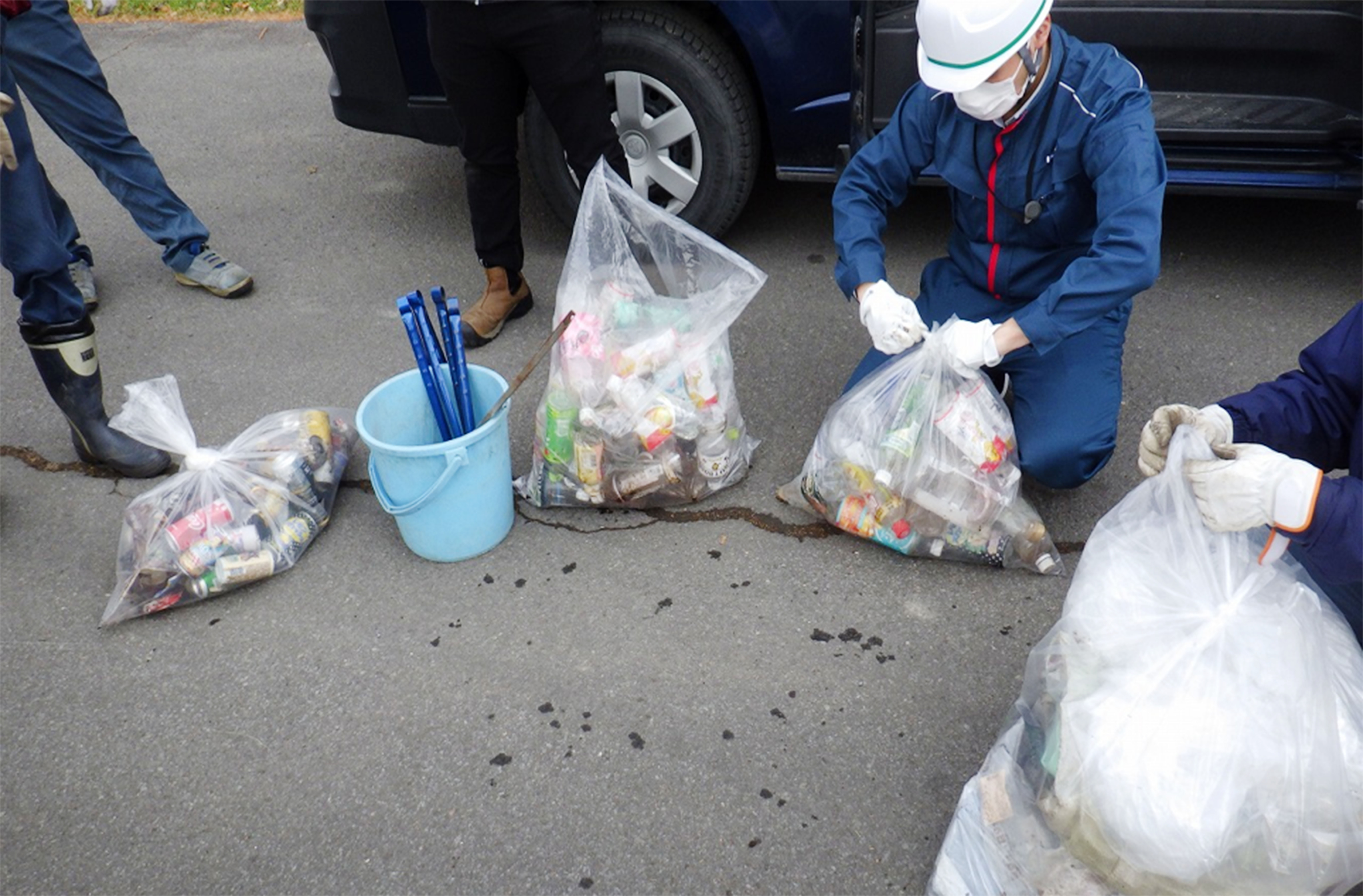 ペットボトルや缶、燃えるごみ、鉄ごみなどを回収し、合計5袋も拾うことができました。